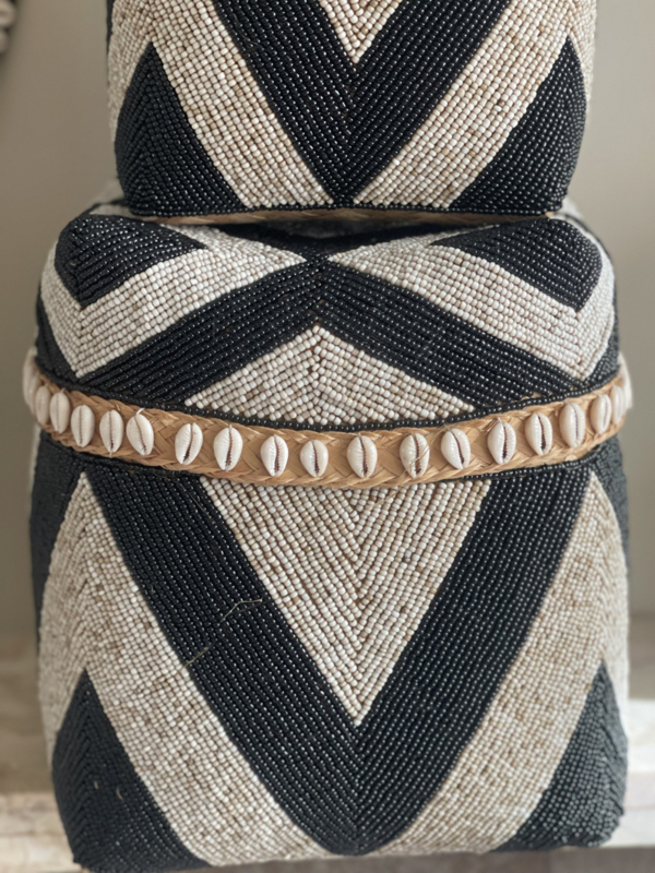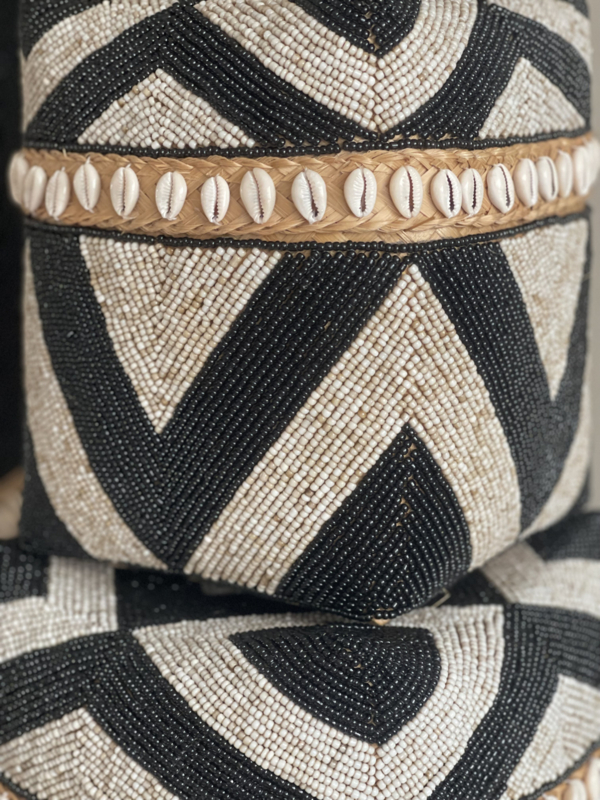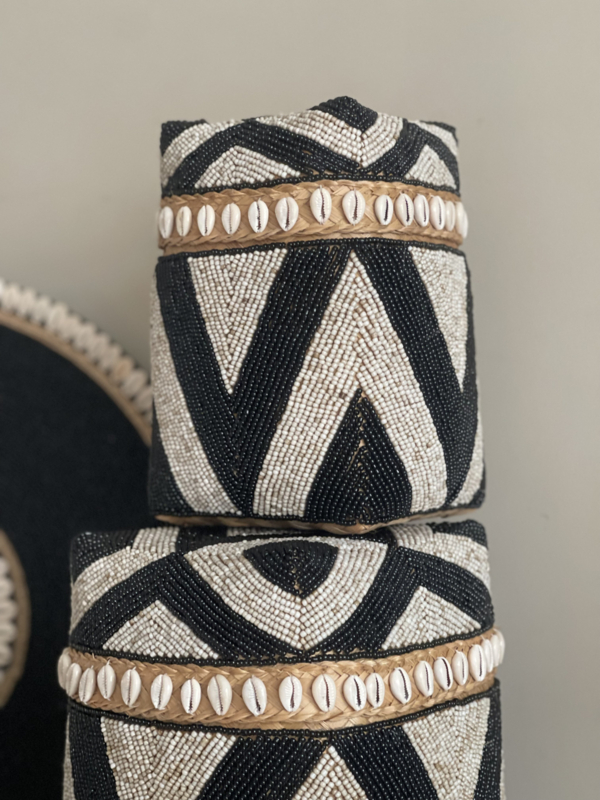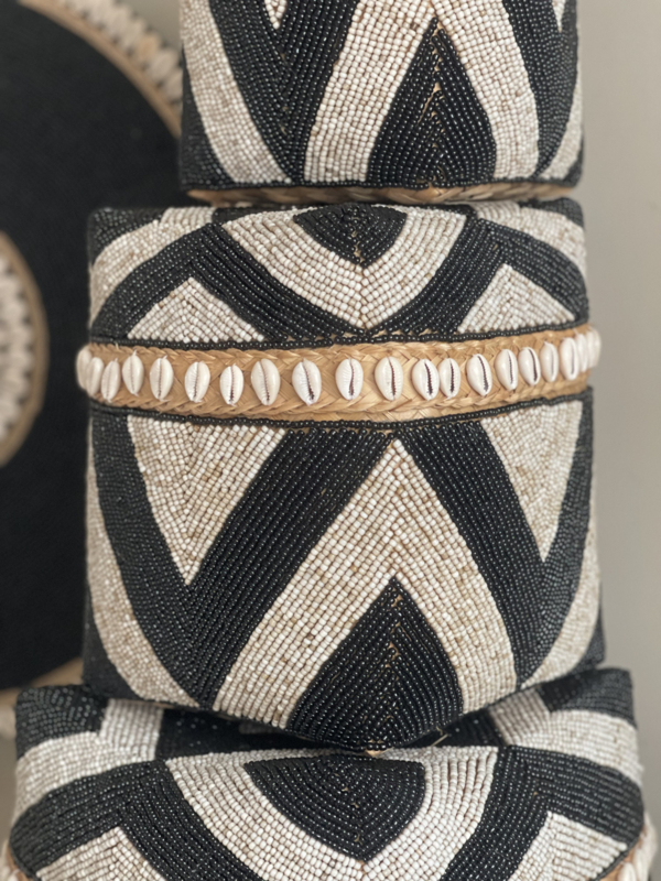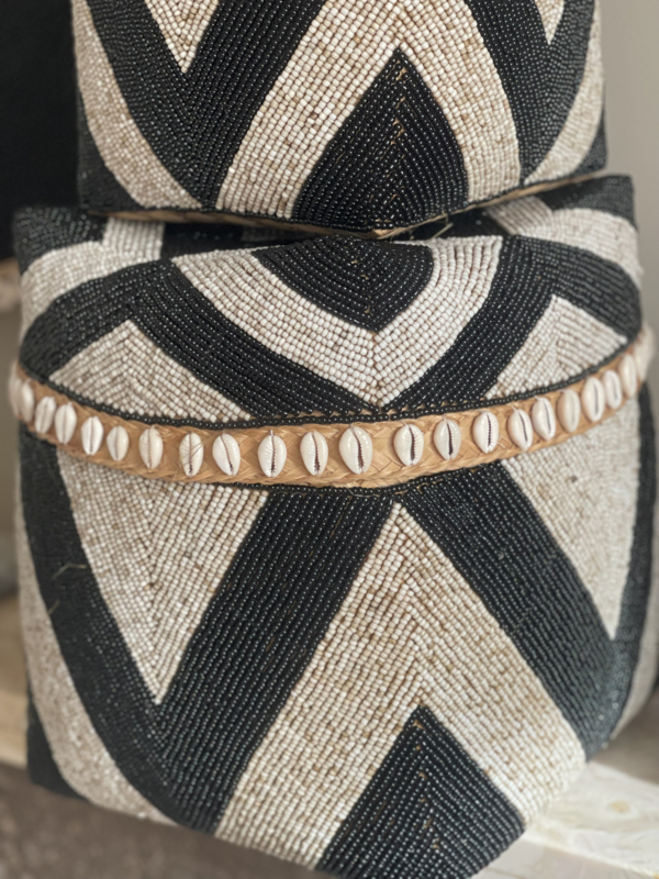 Kralen offermand zwart/naturel hoog model