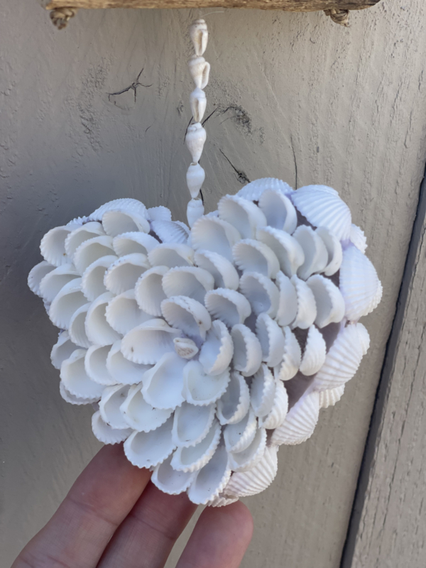 Handgemaakt schelpenhart hanger, wordt gebruikt als decoratief item voor in huis of overkapping
