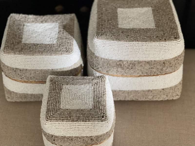 Balinese Kralen offermand naturel / witBalinese kralen offermanden zijn prachtige en betekenisvolle kunstwerken die een belangrijke rol spelen in de Balinese cultuur. Deze manden worden gebruikt bij religieuze ceremonies