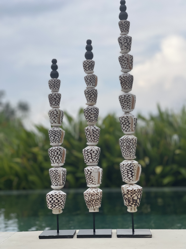 Onze kralen ornamenten zijn gemaakt van natuurlijke materialen en zijn beschikbaar in verschillende vormen, maten en stijlen. Ze passen perfect als decoratief accent op een kast, dressoir, sidetable of in een open wandrek. Door de combinatie van kralen, natuurlijke tinten en bijzondere vormen voeg je eenvoudig zachtheid, textuur en karakter toe aan jouw interieur.